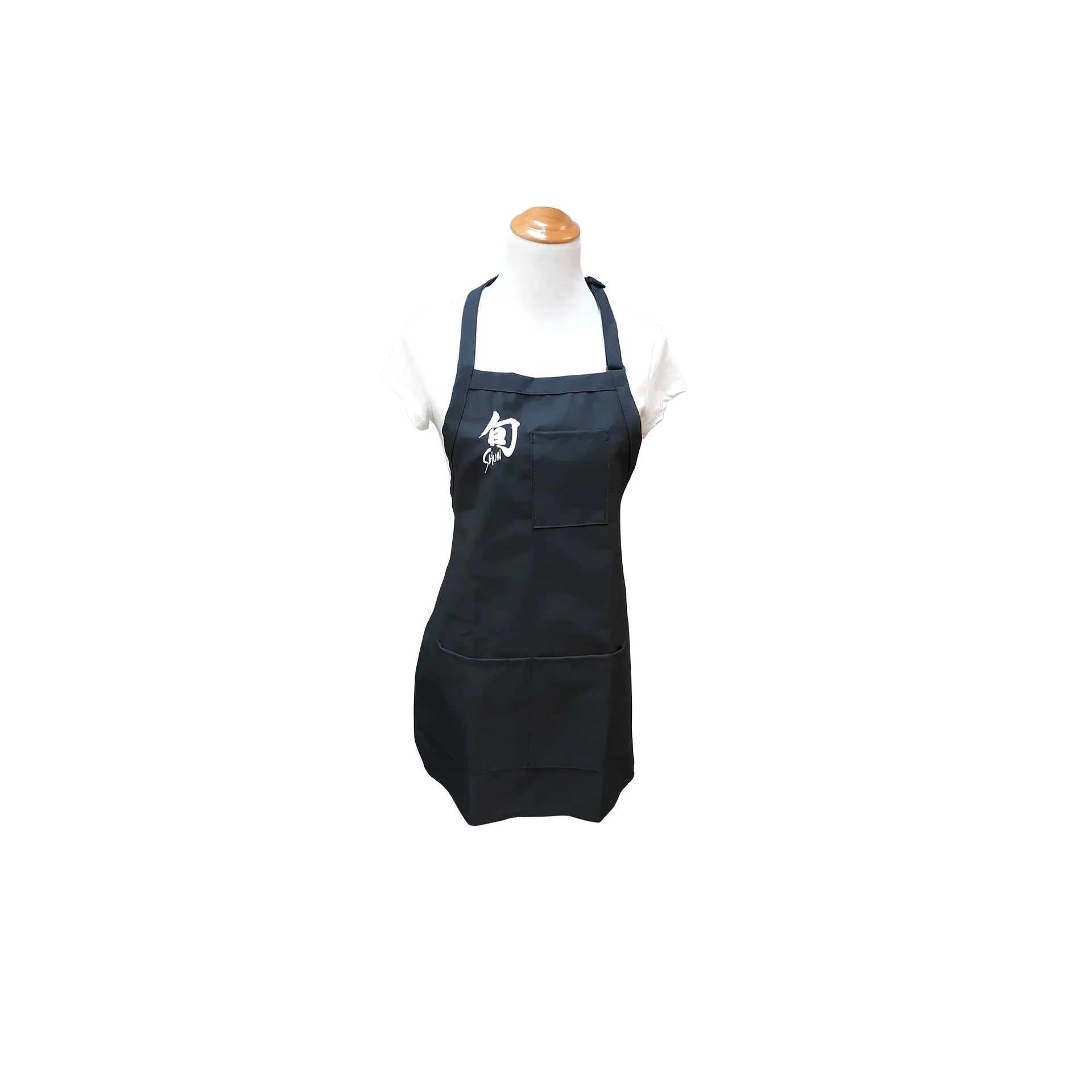 Made in the United States. Keep your clothing neat and clean while you cook with our new Shun chef's apron. In classic black, this handsome apron is made of durable, poly/cotton twill with a crease-resistant finish. Stress points are reinforced...