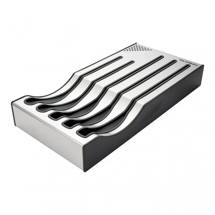 Made in Japan. Introducing a new dimension to the storage for your Global Knives. The Knife Dock is both a safe and hygienic alternative to the traditional knife block. This can be used to display your collection on the counter...