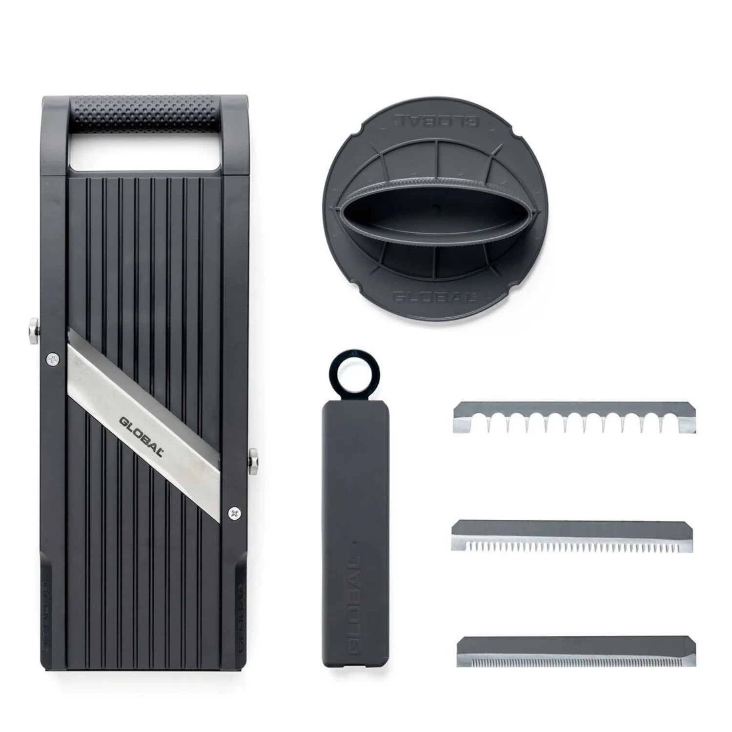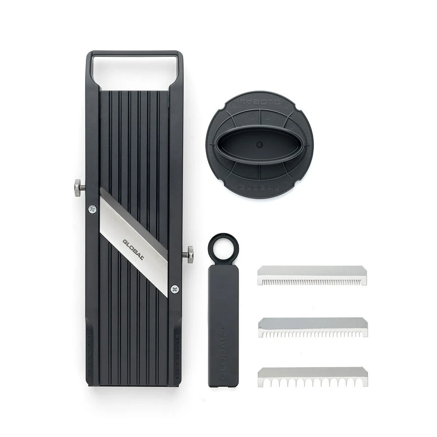 Made in Japan. The GLOBAL Mandolin Slicer is a must-have for every kitchen enthusiast. It is a versatile tool that enables precision slicing, making food preparation both efficient and enjoyable. Use the standard plane blade to create uniform slices of...